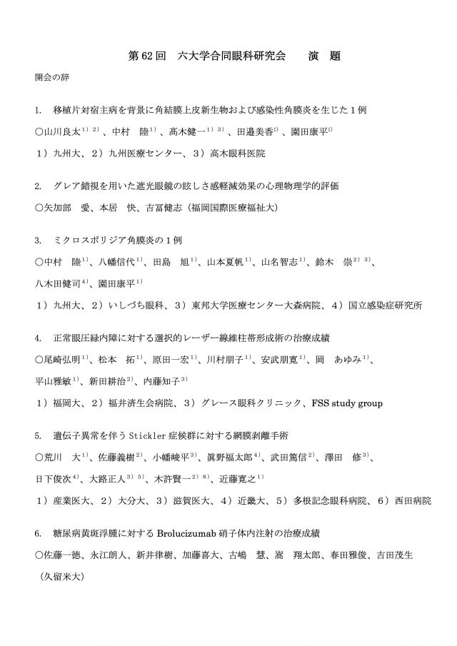 第62回六大学合同眼科研究会のご案内