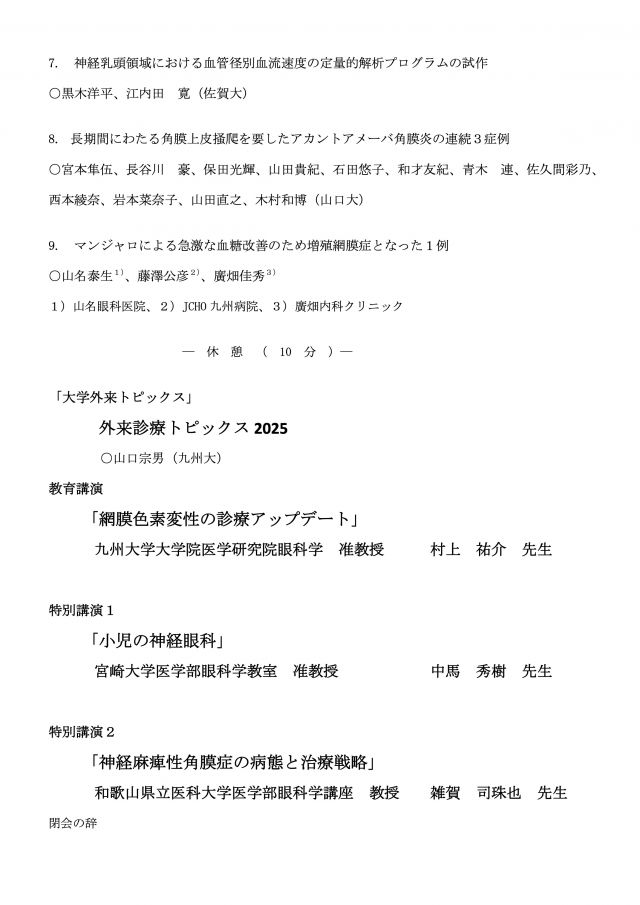 教育講演 : 村上 祐介 先生 (九州大学大学院医学研究院眼科学 准教授)